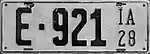 1921 | Embossed silver serial on black plate with border line; "IA 21" at right | none | 123456 | 1 to approximately 441000 | |