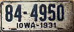 1931 | Embossed dark blue serial on white plate with border line; "IOWA-1931" centered at bottom | none | 1-12345 10-12345 |