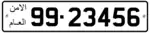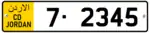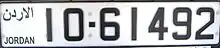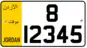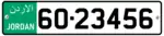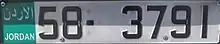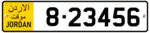 Jordanian regular legal standard number plate. | |
