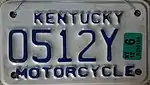 Motorcycle | 2003–09 | Embossed dark blue serial on white plate; "KENTUCKY" and "MOTORCYCLE" centered at top and bottom respectively | 1234A | 0000A to 9999Z | |