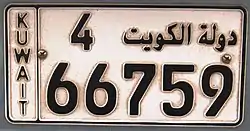 Vehicle registration plates of Kuwait started in 1950. The current version started in 2008.