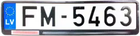 The Latvian government allows registering personalized plates. In 2006, CSDD decided to increase price from 542.80 LVL to 2,500 LVL, because the old price became too affordable.[3] Personalized plates can consist from two to eight symbols: letters, numbers or spaces. The same symbol can be repeated maximum 3 times without breaks (for example, "XXXIXXX"). The plate cannot include only numbers, so the minimum requirement is one letter and one number (e.g., "4O" (forty) consist of the number 4 and the letter O) or two letters.