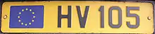 The numbers are issued at a national level and give no indication of regional origin. Plates have black characters on a yellow background, with the standard blue EU stripe on the left. The current usage and format of plates was enacted by parliament in June 2003.[1]