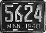 1940 | Embossed white serial on black plate with border line; "MINN - 1940" or "MINNESOTA 1940" (see right) centered at bottom | none | 123-456 | 1 to approximately 734-000 | The abbreviated state name was used on plates with serials of up to four digits (1 through 9999), and the full state name on plates with five- or six-digit serials. This practice continued through 1948. |