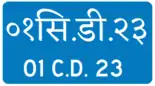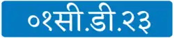 Vehicles registered in Nepal under the name of foreign diplomatic agencies such as embassies, consulates, or missions use blue plates with white letters. Generally, "Corps Diplomatique" vehicles have the following format: ## सी.डी. ##. "सी.डी." is literally read as "see.dee.", and is meant to be the Nepalese equivalent of the code "C.D.". Other vehicles such as vehicles belonging to consular aides, Honorary Consular Positions generally use H.C.C format with "blue" plates with "white" letters. Most other countries do not provide Diplomatic(Blue) Number Plates to Honorary Consular Positions. A lot of the times, since these vehicles belong to foreigners, their license plate comes with an English translation as well.