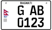 In Nepal, all road vehicles with or without a motor (except bicycles) are tagged with a registration number. This is issued by the state-level Transport Management Office, a government agency under the Department of Transport Management.[1] The license plates must be placed in the front as well as back of the vehicle. The international vehicle registration code for Nepal is NEP.