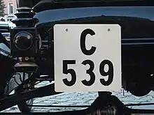 From 1 April 1900 to 31 March 1913 regional license plates with only digits were in use. The license plates were in black with digits and the name of the province/town in white. Surviving vehicles from the period may use the original license plates. Only a handful of such vehicles exist today.