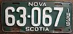 The Canadian province of Nova Scotia first required its residents to register their motor vehicles in 1907. Registrants provided their own licence plates for display until 1918, when the province began to issue plates.[1]