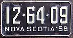 1958 | Embossed light yellow serial on black plate with border line; "NOVA SCOTIA '58" at bottom | 1-23-45 12-34-56 |