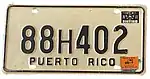 The U.S. commonwealth of Puerto Rico first required its residents to register their motor vehicles and display license plates in 1906.[1] Only rear plates have been required since 1976.