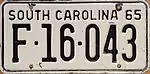 1965 | Embossed black serial on white plate with border line; "SOUTH CAROLINA 65" at top | none | A-123456 AB-1234 |