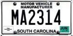 Dealer | January 2016 – present | Screened black serial on reflective white plate; "South Carolina" screened at bottom; "Dealer" screened at top with blue stripe above and red stripe below | X123456 | X622001 to X680655 (as of January 16, 2022) | Issued annually from 2008 to 2015. X123456 serial format used during this period, with the first digit after the 'X' corresponding to the last digit of the year of expiration (9 for 2008, 0 for 2009 and so on up to 6 for 2015). Serials on the current plate continue from where those on the 2015 plate left off. |