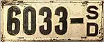 The U.S. state of South Dakota first required its residents to register their motor vehicles in 1905. Registrants provided their own license plates for display until 1913, when the state began to issue plates.[2]