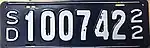| 1922 | Embossed white on dark blue; lines at top and bottom borders; vertical "SD" and "22" at left and right respectively | none | 123456 | 30000 to approximately 150000 | ||