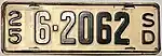 1962 | Embossed black on reflective white with border line; "S.DAK.", stamped Mount Rushmore graphic and "62" at bottom | none | 1-12345 10-1234 |