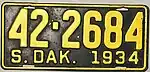 1934 | Embossed yellow on black with border line; "S. DAK. 1934" at bottom | none | 1-1234 10-1234 |