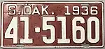 1936 | Embossed white on brick red with border line; "S. DAK. 1936" at top | none | 1-1234 10-1234 |