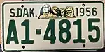 1956 | Embossed green on beige with border line; "S.DAK.", Mount Rushmore decal and "1956" at top | none | 1-12345 10-1234 |