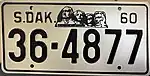1960 | Embossed black on reflective tan with border line; "S.DAK.", stamped Mount Rushmore graphic and "60" at top | none | 1-12345 10-1234 |
