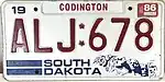 1964 | Embossed dark blue on reflective white with border line; "S.DAK.", stamped Mount Rushmore graphic and "64" at bottom | none | 1-12345 10-1234 |