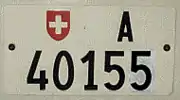 Civilian Federal vehicles had registration plates composed of the Swiss shield followed by the letter "A" (short for "Administration") and a number with up to five digits. The first digit indicated the department. In 2004 these plates were replaced with normal cantonal plates.