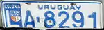 Colonia Department | LA-1234 | blue on white | "COLONIA" debossed within embossed square that contains the "L"; "URUGUAY" at top. Some plates have a full-color seal, while others do not. |