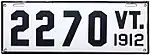 1913 | Black serial on white porcelain plate with border line; vertical "VT" and "1913" at left and right respectively | none | 1234 | 1 to approximately 6000 | |