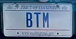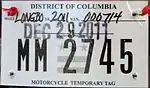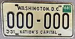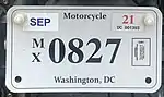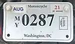 The U.S. federal district of Washington, D.C., first required its residents to register their motor vehicles in 1903. Registrants provided their own license plates for display until 1907, when the district began to issue plates.[1] Plates are issued by the District of Columbia Department of Motor Vehicles (DC DMV). Front and rear plates are required for most classes of vehicles, while only rear plates are required for motorcycles and trailers.