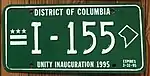 Third inauguration of Marion Barry | 1995 | Green with district flag at left and district outline at right | I-123 | |