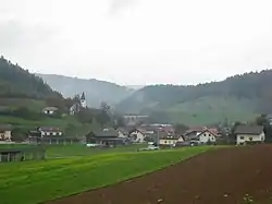The local church is dedicated to Anthony of Padua and belongs to the Parish of Žalna. It was built between 1938 and 1940.[4]