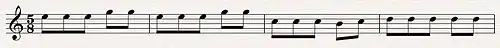 4 rhythm. The first half of the bar is written as an eighth-note triplet. The second half of the bar is written as two eighth notes. The unique swing in the second half is what gives Venezuelan merengue its lilt.