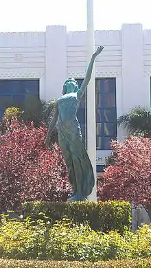 A famous statue, installed in 1922 and for which then-unknown Venice High School student Myrna Loy served as model, stood on the front lawn of Venice High School for over 70 years. An unsightly cage was erected to prevent vandalism, but the statue was ultimately removed and sent to indoor storage in 1998. However, a bronze-cast replacement statue was mounted before 2,000 cheering onlookers in an April 2010 ceremony.