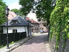 The oldest buildings come from the second half of the 18th century and the first half of the 19th century. The oldest object in this part of the city is a portal at a descent to the basement of building No. 26 dated back to the 16th-17th century.[3]