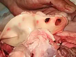 - Transposition of the great vessels, see also dextro-Transposition of the great arteries and levo-Transposition of the great arteries
