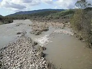 ![]() Ventura River flowing through cobble near Meiners Oaks. | |