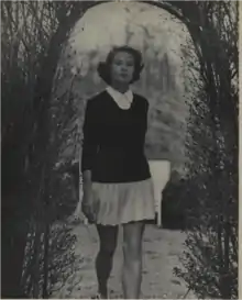 She borrowed liberally from menswear and regularly used wool flannel, tweeds and pinstripes for her women's suits and separates.[22] Even ski ensembles were made of wool flannel and were often shown with an ascot or a tie. Another example of mixing men's and women's codes could be seen in an extraordinary black velvet ski suit that Borea designed in 1933, which looked like a tuxedo and closed with metallic clips that echoed those of a ski boot. The designer re-visited the theme often, like with evening wear she designed in 1945 that sported a tuxedo top and a full skirt like a ballerina's tutu, decades before "le Smoking" burst onto the fashion scene.[23]
