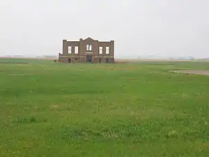 The community was first known as Falsen, founded in 1912 by Norwegian settlers, who named it for Norwegian statesman Christian Magnus Falsen.[2] Falsen was also the name of the station on the Great Northern Railway.[3] The post office was established with the name Falsen in 1913, but the name was changed in 1925 to honor Pierre de la Verendrye, an early French-Canadian explorer who was said to be the first non-Native American person to tour the North Dakota prairies.[4][5] The population of Falsen in 1920 was 75.[2] The population of Verendrye in 1938 was 100, but when the railroad switched to diesel locomotives, it no longer needed to make regular stops at Verendrye for water and coal. This was the beginning of Verendrye's final decline, with the post office closing in 1965, and the final residents moved away in 1970.[6][7] A farmstead now occupies the townsite, and the last remnant of Verendrye, the crumbling remains of the Falsen School, sits in a corner of the property.