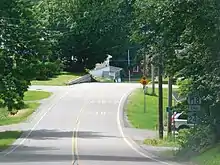 VT 242 continues northeast through Westfield, dropping the Mountain Road moniker as it runs along Jay Peak. The route passes through dense woods along Jay Peak, running up the mountainside. After making a northwestern jog, VT 242 turns northeast, passing Access Road, which connects drivers to Jay Peak Ski Resort. Winding northeast, the route parallels Access Road, which soon meets Shortcut, which connects back to VT 242. Now in the town of Jay, VT 242 runs northeast past some residences before bending east to Graham Hill Road. At that junction, the route turns northeast again, reaching the hamlet of Jay. Through Jay, VT 242 passes a local restaurant and store at Cross Road. Leaving Jay, the route soon turns southeast into the town of Troy. In Troy, VT 242 goes east and reaches a junction with VT 101. This junction marks the eastern terminus of VT 242.[3]