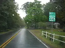 According to a 1927 report prepared by the federal Bureau of Public Roads and the Vermont State Highway Department, the unnumbered Reading–Windsor road had a surface-treated gravel surface. The towns through which the highway passed maintained the road with financial aid from the state.[2] The town of Windsor reconstructed the surface-treated gravel road outside the town center in 1940 and 1941. West Windsor reconstructed their gravel road in 1941 through Brownsville and in several segments outside of Brownsville between 1946 and 1952, and Reading reconstructed their short portion of the highway in 1948.[1] In 1958, the three towns petitioned the State Highway Board to accept the portion of the highway outside the Windsor town center into the state highway system, a request the state approved. The state took over maintenance of the highway from VT 106 to the Windsor village boundary and established VT 44 through separate agreements that went into effect in December 1958 and January 1959.[3]