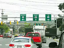 Today, the road is a heavily used artery, relative to the population of the area, with a maximum AADT of 13,900 vehicles, as of a 2012 estimate.[1] Even with the road being mostly restricted to 50 miles per hour (80 km/h), as with the majority of other state-maintained thoroughfares in Vermont, and with no grade separation between it and other roads, the highway is designed to enable drivers to maintain a constant speed throughout their journey. Signage is generally sized and placed in the manner of an Interstate Highway, and with three exceptions - one in Berlin and two in Barre - all turns are executed from roadway dedicated to that purpose, be those lanes with exclusive signals, or in two cases, ramps.