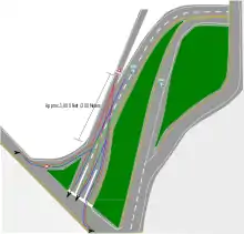 From Berlin Street to the road's terminus, the road somewhat resembles expressways in more urban cities, with the elevated nature of the road above all other terrain (though not on an actual constructed skyway), and the obvious appearance of the road being placed there long after the surrounding streets and buildings. The road continues east until a sharp turn north right before the final intersection. At this point the roadway crosses an occasionally used railroad, and Route 62 technically ends about 50 feet (15 m) from the intersection with Vermont Route 14 and US 302, where the speed limit drops to the city-wide mandated 25 miles per hour (40 km/h).[6] This intersection is prone to backups and delay from all approaches, as it is the convergence of three signed roads, two of which form a concurrency east into the main commercial area of Barre. Adding to the delay is the fact that no dedicated turn lanes exist from Route 62 - this being more a space constriction (abutting properties) versus a deliberate choice by the city.