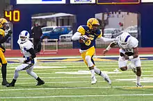![]() Johnson (6) playing for A&M–Commerce in 2014. | |