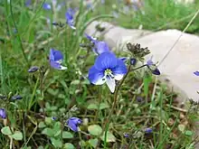 Veronica syriaca, the Syrian speedwell, is a flowering plant species in the family Plantaginaceae. The generic name of this flower is of unknown origin. Some think it is a distortion of betonica, the Latin name of a species of Labiates; others consider that it refers to Saint Veronica who handed a cloth to Christ to wipe the perspiration from his face.[1]