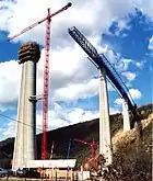 The Verrières Viaduct is a curved 720-metre concrete autoroute box girder bridge in the south of France, which at one point was briefly the highest bridge in France; it is almost 500 feet tall.