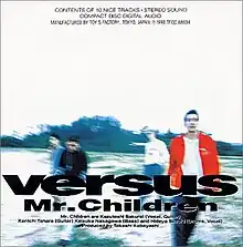 Versus is the third, and second full-length album, by Japanese rock band Mr. Children released on September 1, 1993. The album debuted on the Japanese Oricon music charts at #3 and sold 802,140 copies during its run on the chart.[1] Just like the previous two albums, Versus contains only one single released on July 1, 1993, titled "Replay" with another album track "And I close to you" also being included in Mr. Children's fourth single "Cross Road". Versus also marked the first time use of Takeshi Kobayashi as a writer and composer for Mr. Children.