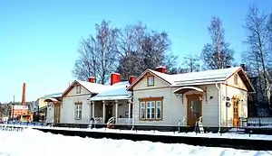 The Vesijärvi railway station (Finnish: Vesijärven rautatieasema, Swedish: Vesijärvi järnvägsstation) is located in the city of Lahti, Finland, in the district of Kartano. It was one end of the port and industrial siding that branched off of the Riihimäki–Saint Petersburg railway, on the west side of the Lahti railway station.[1]