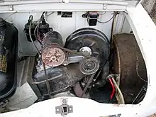 - Two cylinder, two stroke, air cooled. Bore, stroke: 63 mm x 63 mm (393 cc). Motor cyclists at the time were used to mixing oil into their fuel, but the manufacturer belatedly realised that this might compromise the 400's standing as a "car", and from the summer of 1958 "two stroke oil" was held in separate reservoir with a semi-automatic dispenser on the right side of the engine bay.[4]