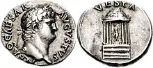 Despite being one of the most spiritual of Roman Shrines, that of Vesta was not a templum in the Roman sense of the word; that is, it was not a building consecrated by the augurs and so it could not be used for meetings by Roman officials.[54] It has been claimed that the shrine of Vesta in Rome was not a templum, because of its round shape. However, a templum was not a building, but rather a sacred space that could contain a building of either rectangular or circular shape. In fact, early templa were often altars that were consecrated and later had buildings erected around them.[55] The temple of Vesta in Rome was an aedes and not a templum, because of the character of the cult of Vesta – the exact reason being unknown.[55]