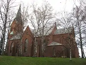 By the church is Vestre Aker Cemetery that was inaugurated simultaneously with the church in 1855 and a parish house that was built in 1983.[1][3]