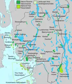 Vestvannet is a lake located within the municipality of Sarpsborg in Østfold county, Norway. The lower part of the lake is a protected area included in the Vestvannet Nature Reserve (Vestvannet naturreservat).[1]